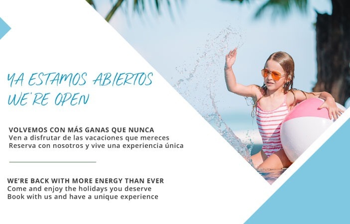 Todas nuestras habitaciones se sitúan alrededor de 6 plazas distintas, cada una con sus respectivas piscinas. Puedes elegir alojarte frente a nuestra playa privada o con salida inmediata a la piscina climatizada de 25 metros. Todo ello conforma un escenario perfecto para disfrutar de unas vacaciones en familia, en los que el sol, la tranquilidad y la diversión están garantizados.