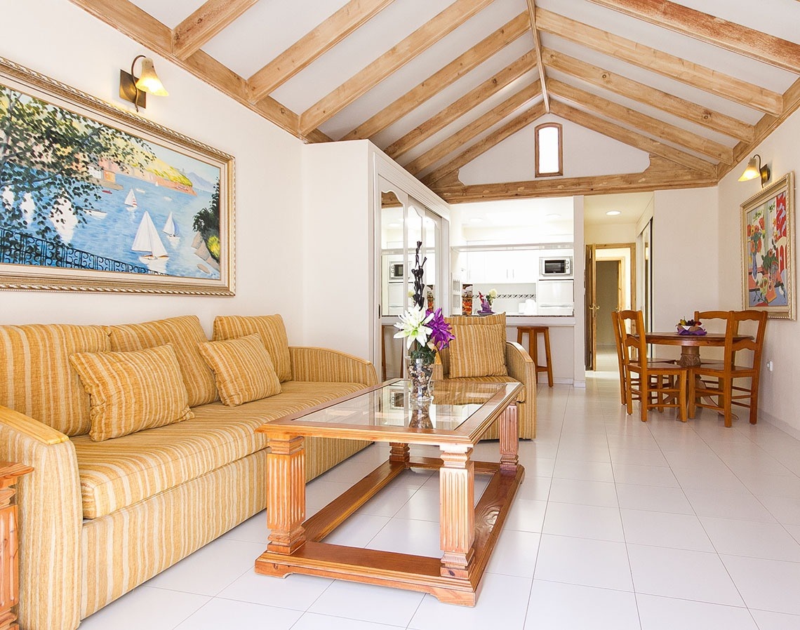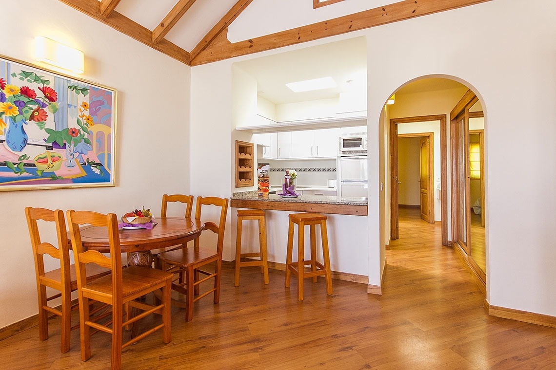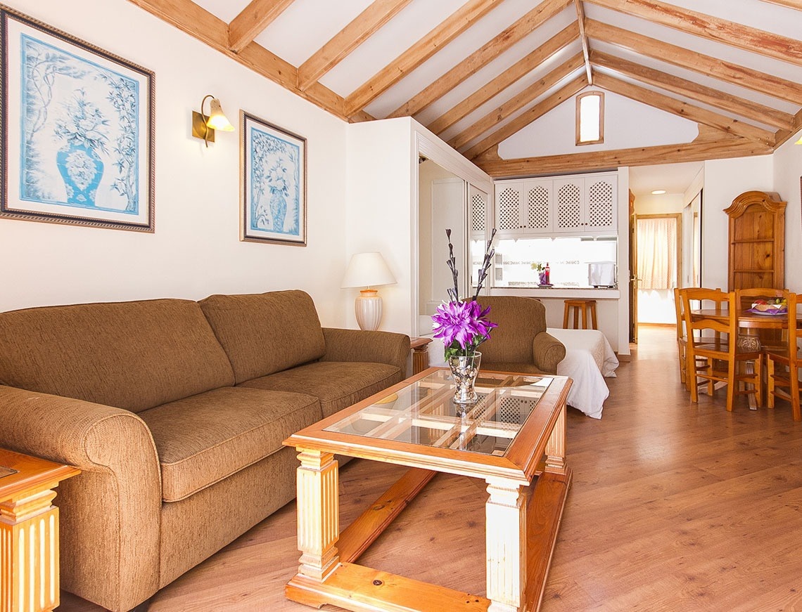 Perfectamente iluminadas con la luz natural de la isla y con techos acabados con vigas de madera que dan amplitud a la habitación. En ellas encontrarás todas las comodidades que necesites, para que disfrutes de tu estancia en todo momento.
